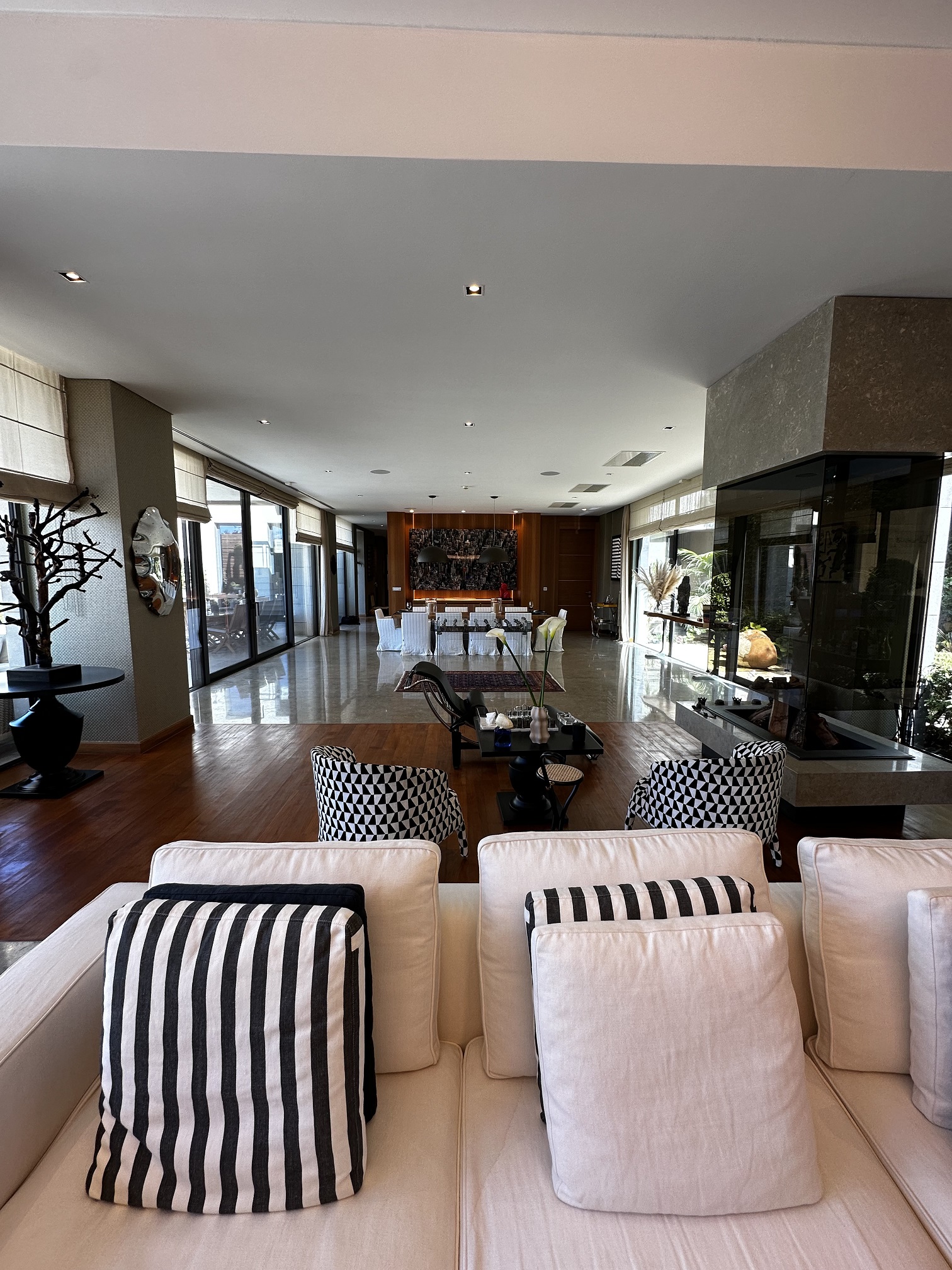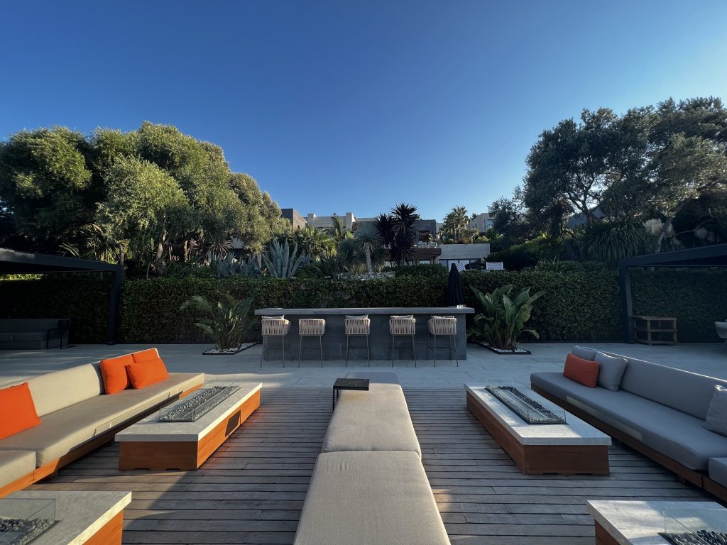 - 2 separate dining and lounge areas, bar area, fire pit
